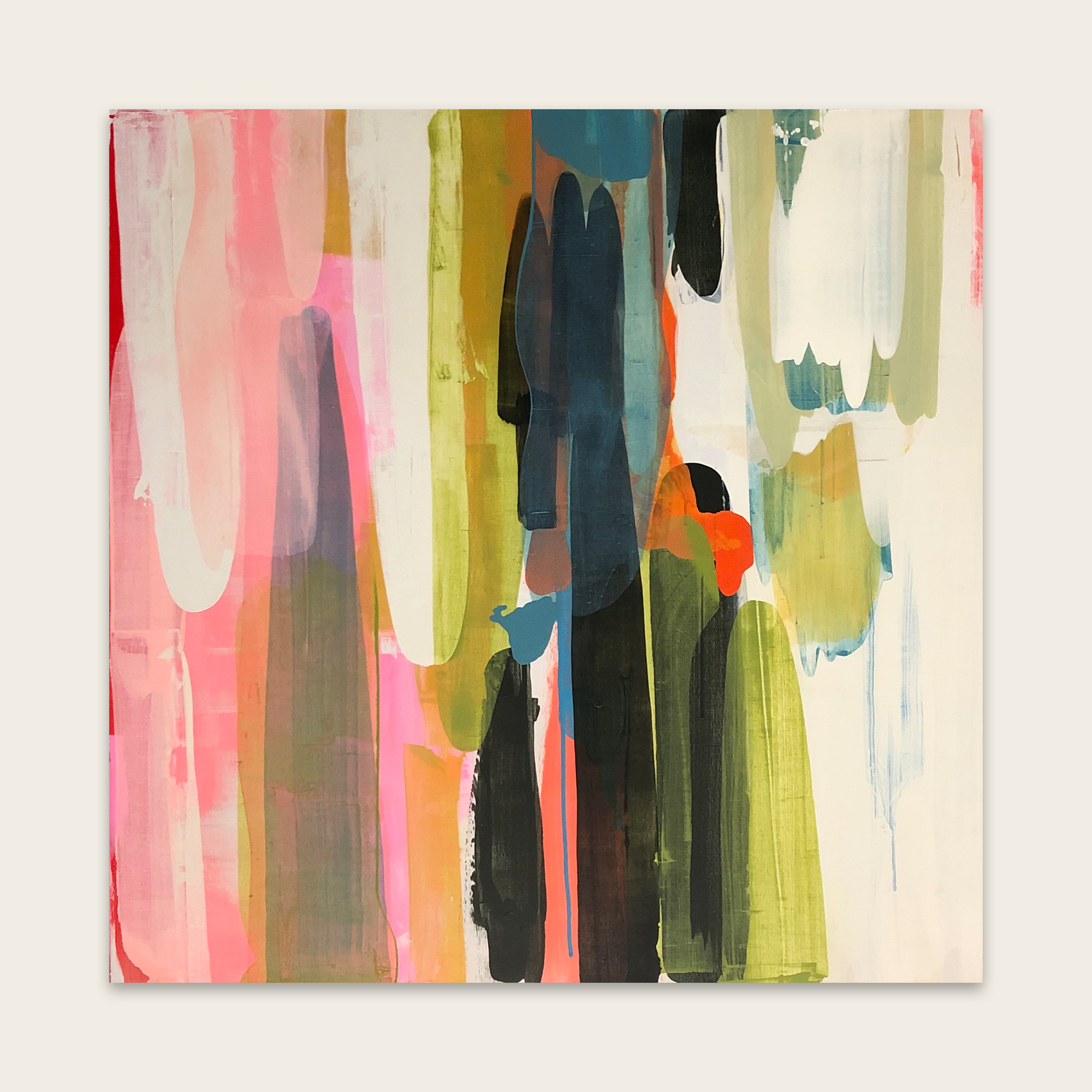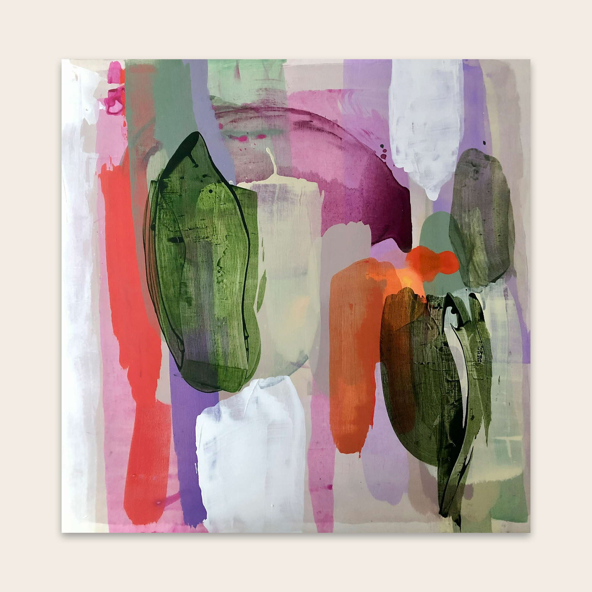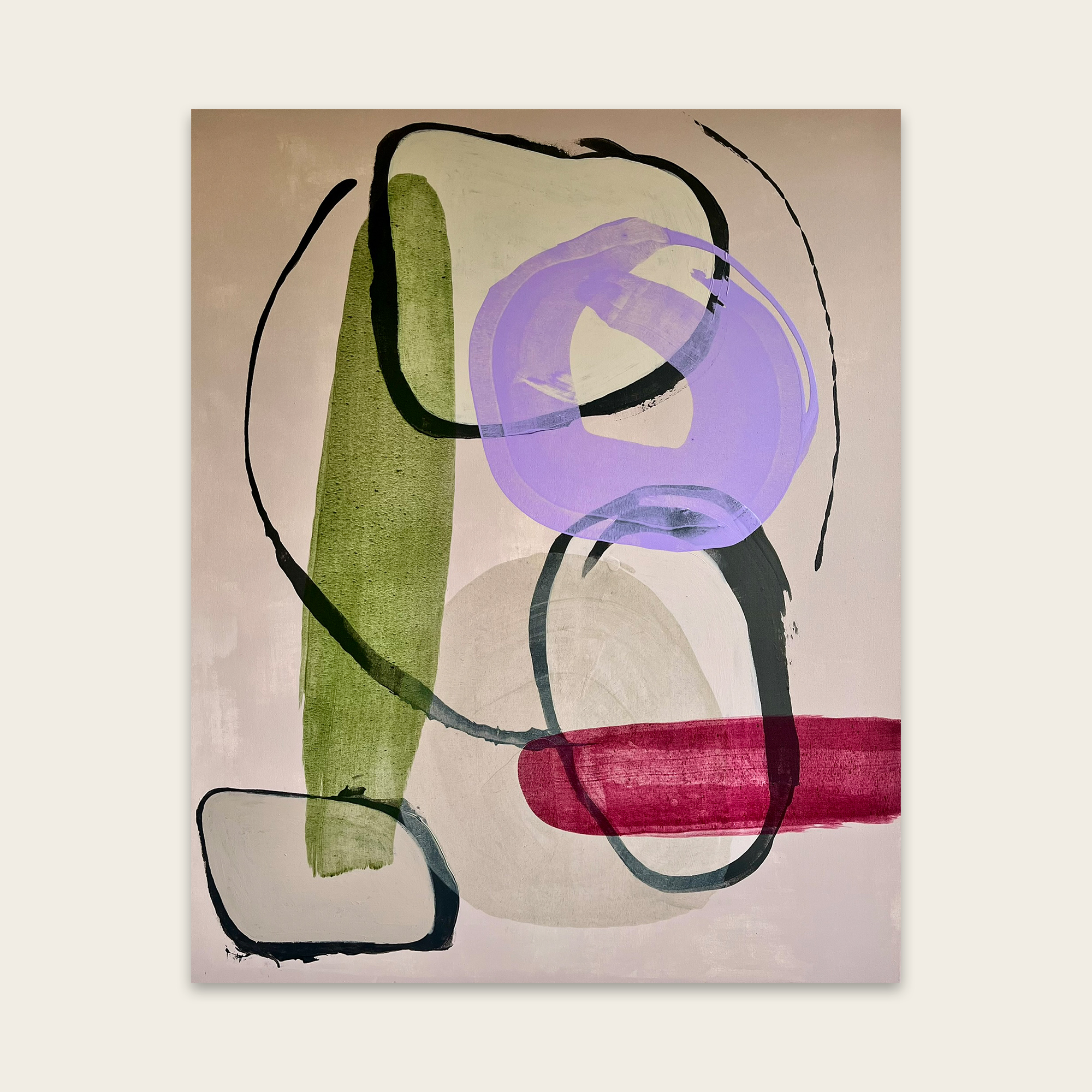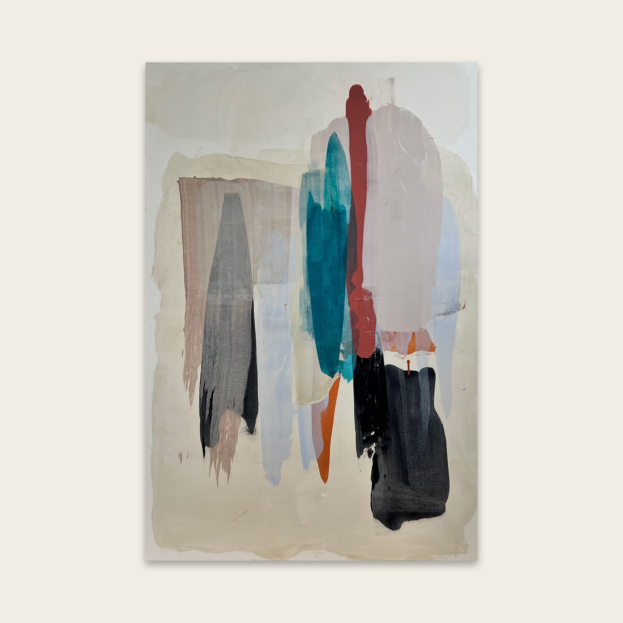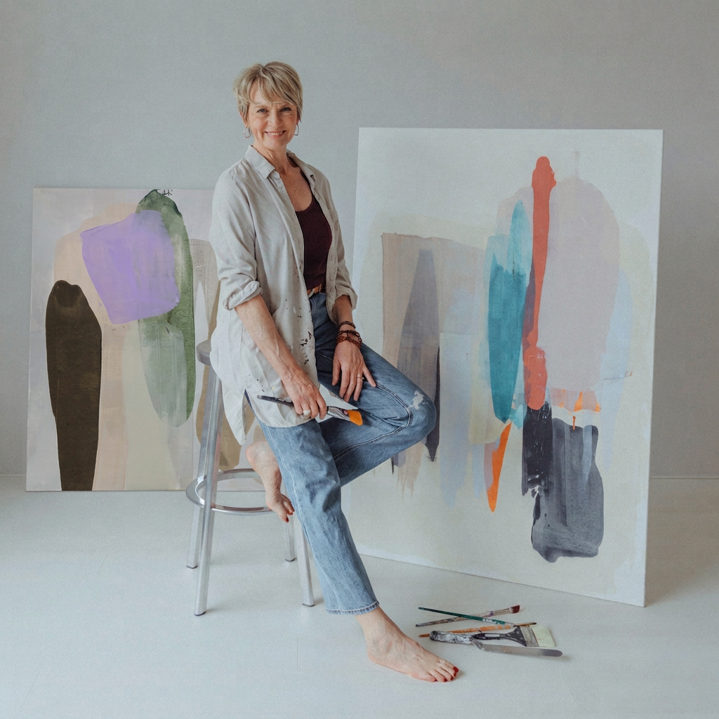 Ik creëer abstracte schilderijen die groeien in lagen, met zachte tinten en een eigen ritme, gedragen door gevoel en beweging.